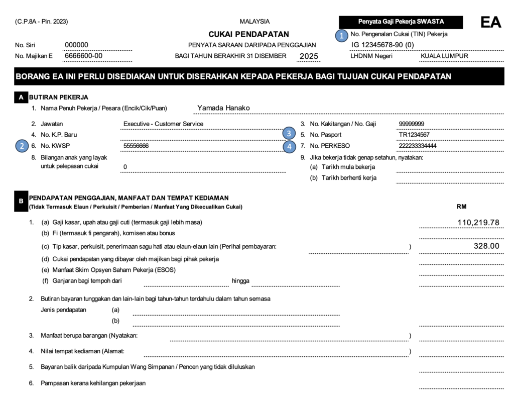 ここでは、確定申告にとって最重要書類であるEA Formの見方について紹介する